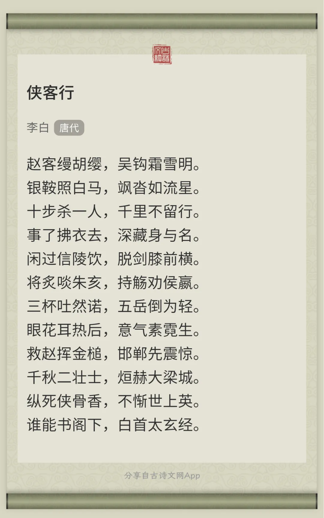 歌颂战国侠士,寄托平定乱世、建功立业之志。快意恩仇背后,是盛唐尚武精神的投影。