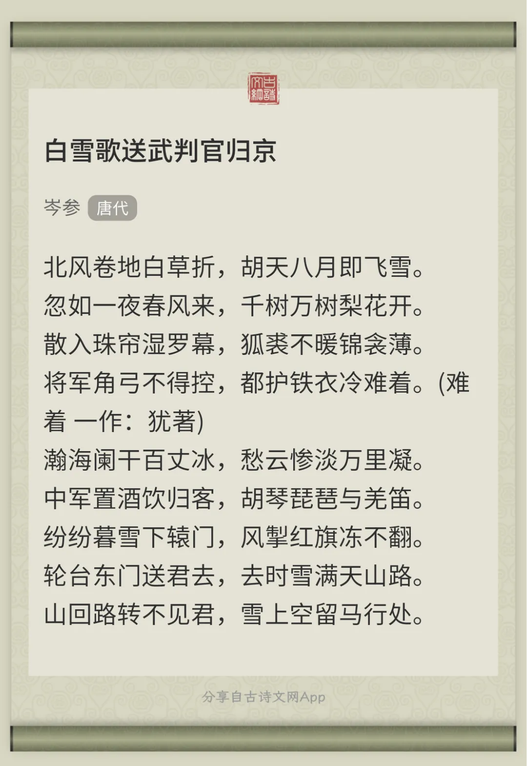 以奇景写离情,塞外苦寒化作瑰丽诗境。盛唐气象,在风雪中依然昂扬。