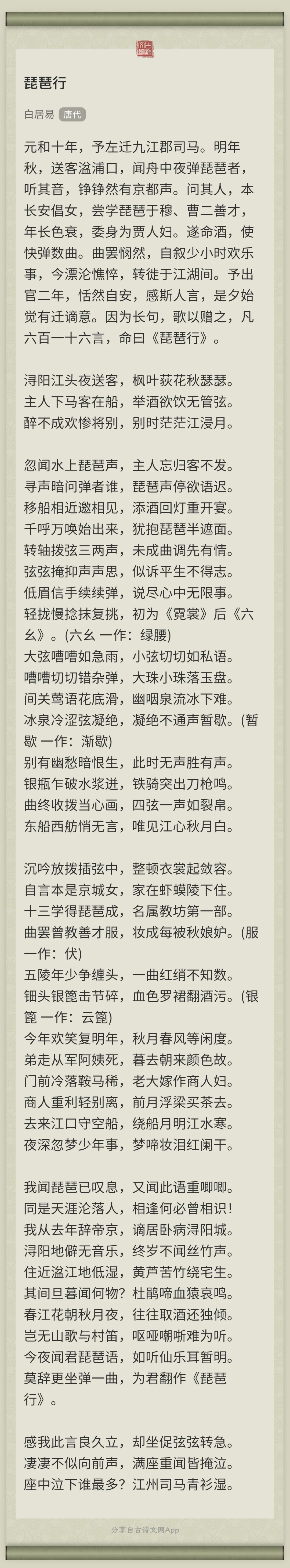 借琵琶女身世,抒贬谪之痛。音乐描写登峰造极,情感共鸣穿越千年。