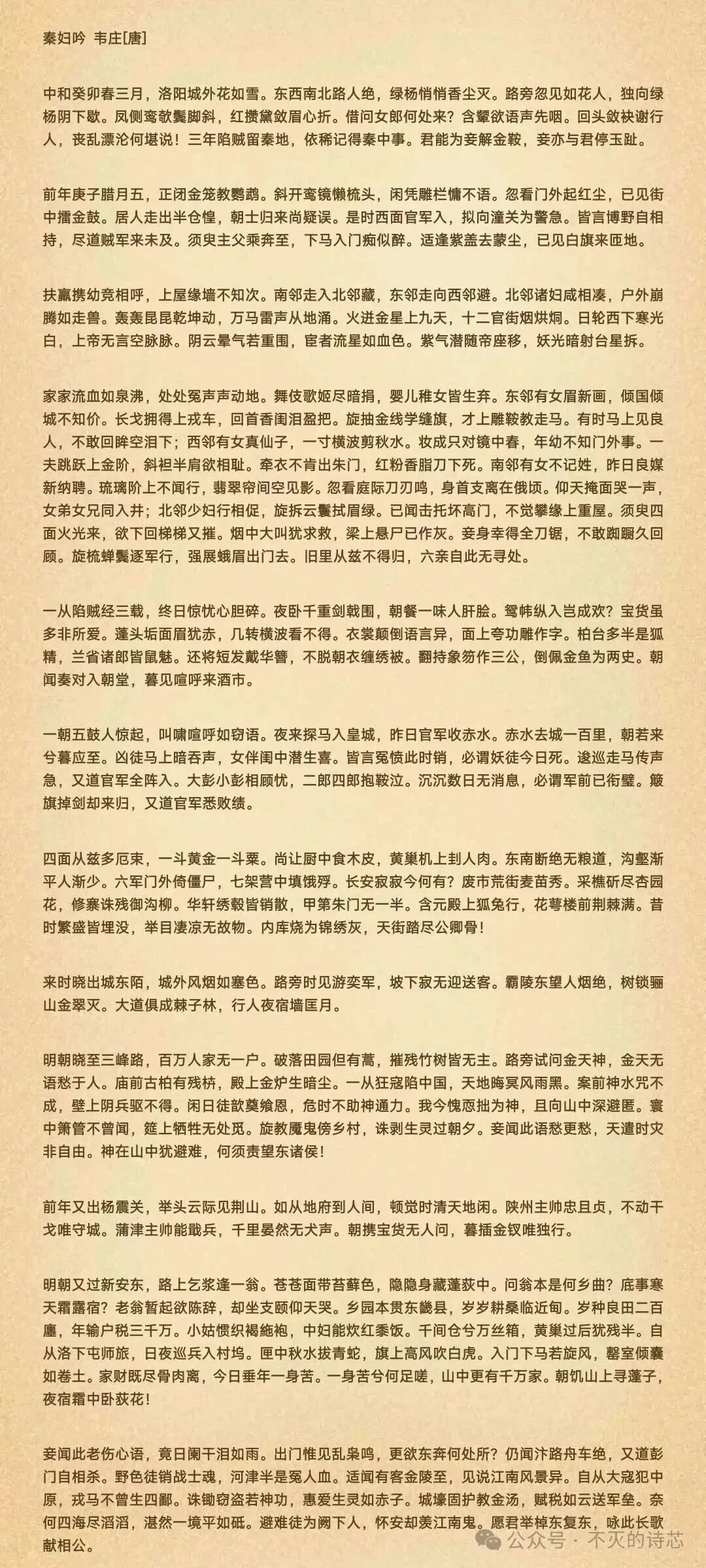 唐代最长叙事诗,写黄巢起义后长安惨状。因触及时政,韦庄晚年禁传,直至敦煌重现。
