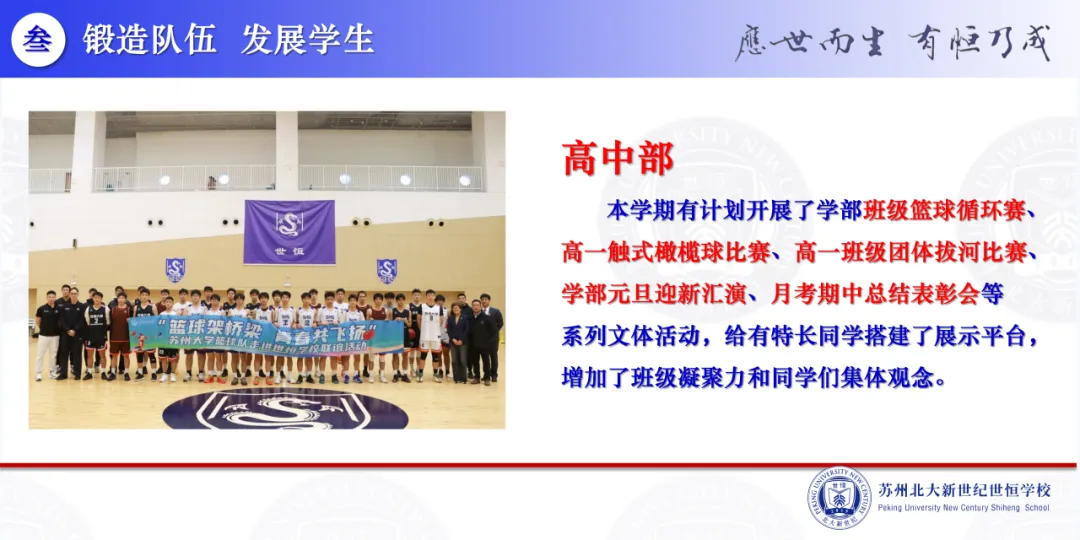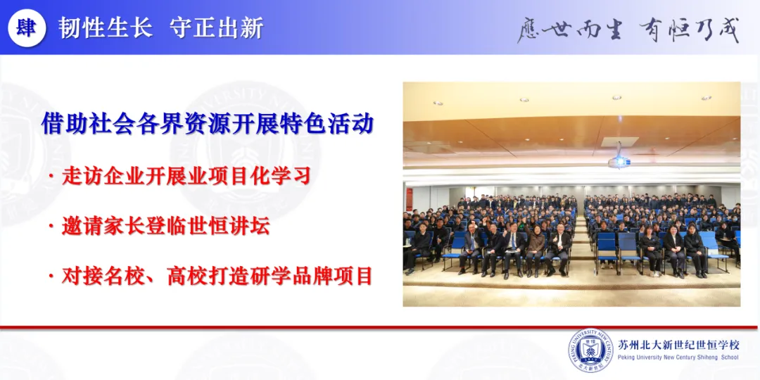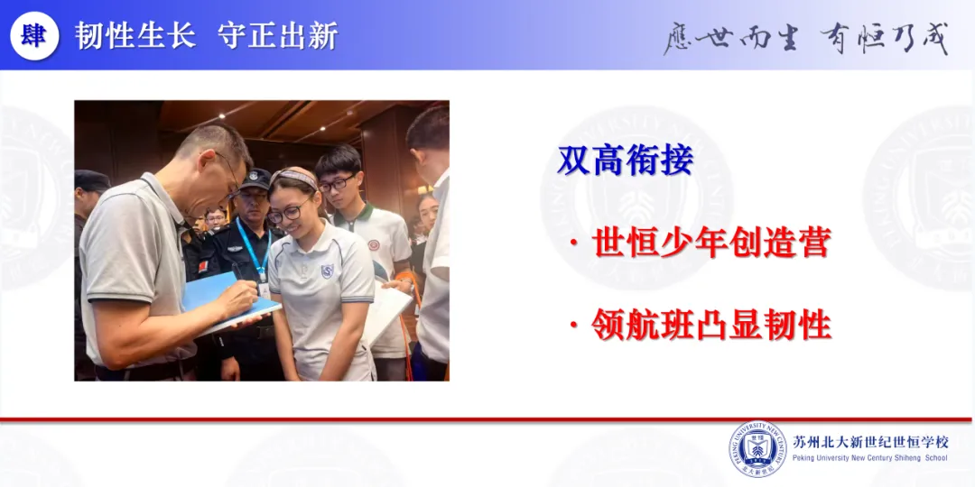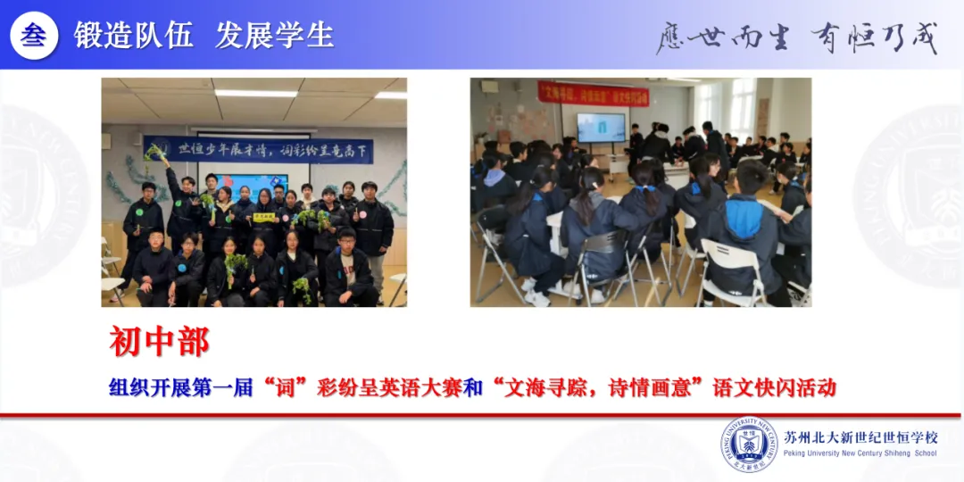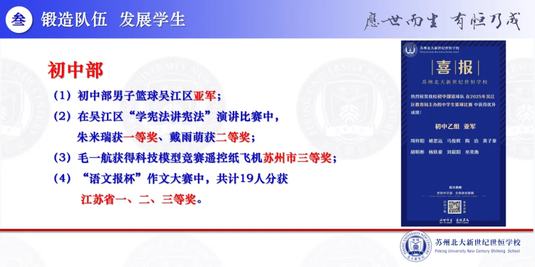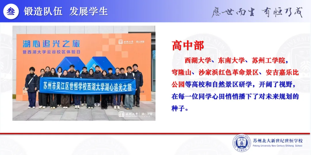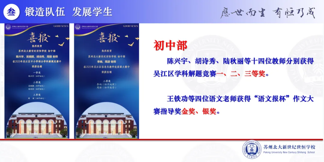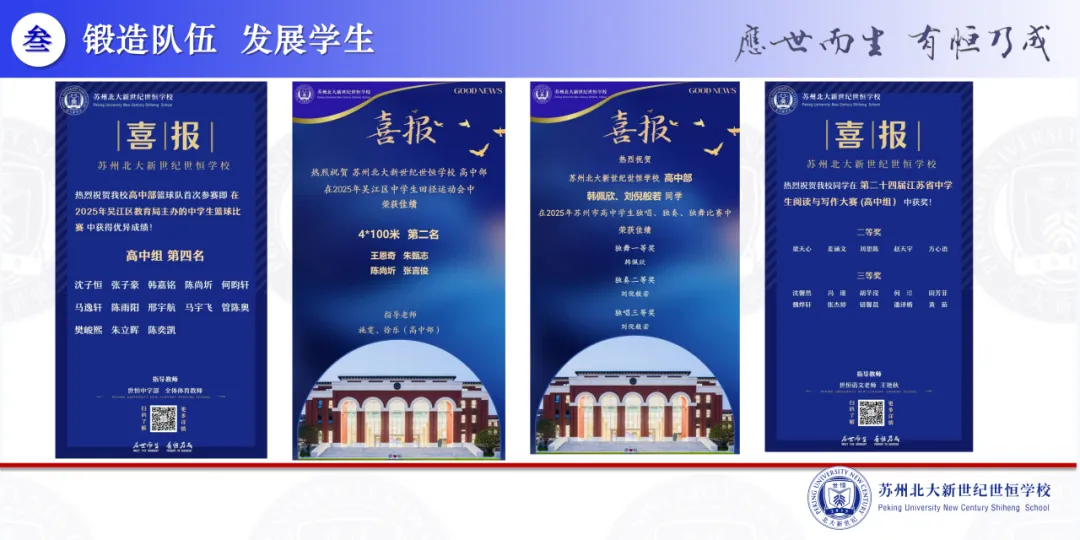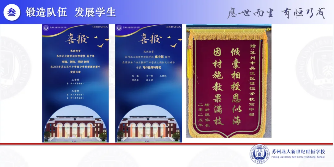 “锻造队伍 发展学生”、“韧性生长 守正出新”,