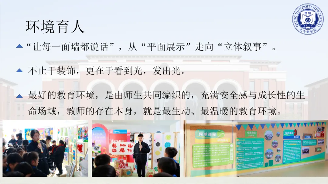 “环境即教育。本学期,我们秉持‘让每一面墙都说话’的理念,着力营造温暖舒心的成长空间。活动育人,则是将教育从‘书本的静态世界’引向‘生活的真实热土’。”