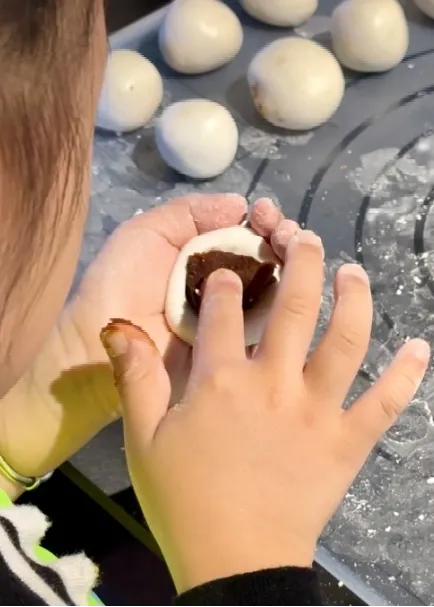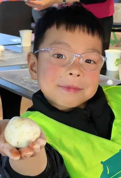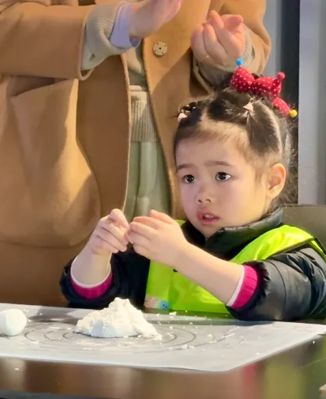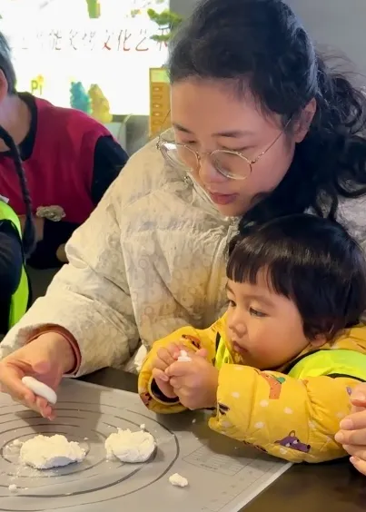 紧接着,“搓汤圆”环节将现场变成了温馨的亲子工坊。孩子们在家长手把手的引导下,认真专注地揉捏糯米团、包裹芝麻馅。有的孩子手法生疏,把糯米团揉得歪歪扭扭;有的孩子则学得很快,熟练地搓出一个个圆滚滚、胖乎乎的汤圆,脸上洋溢着成就感。无论成品是圆是扁,过程都充满了欢声笑语。
