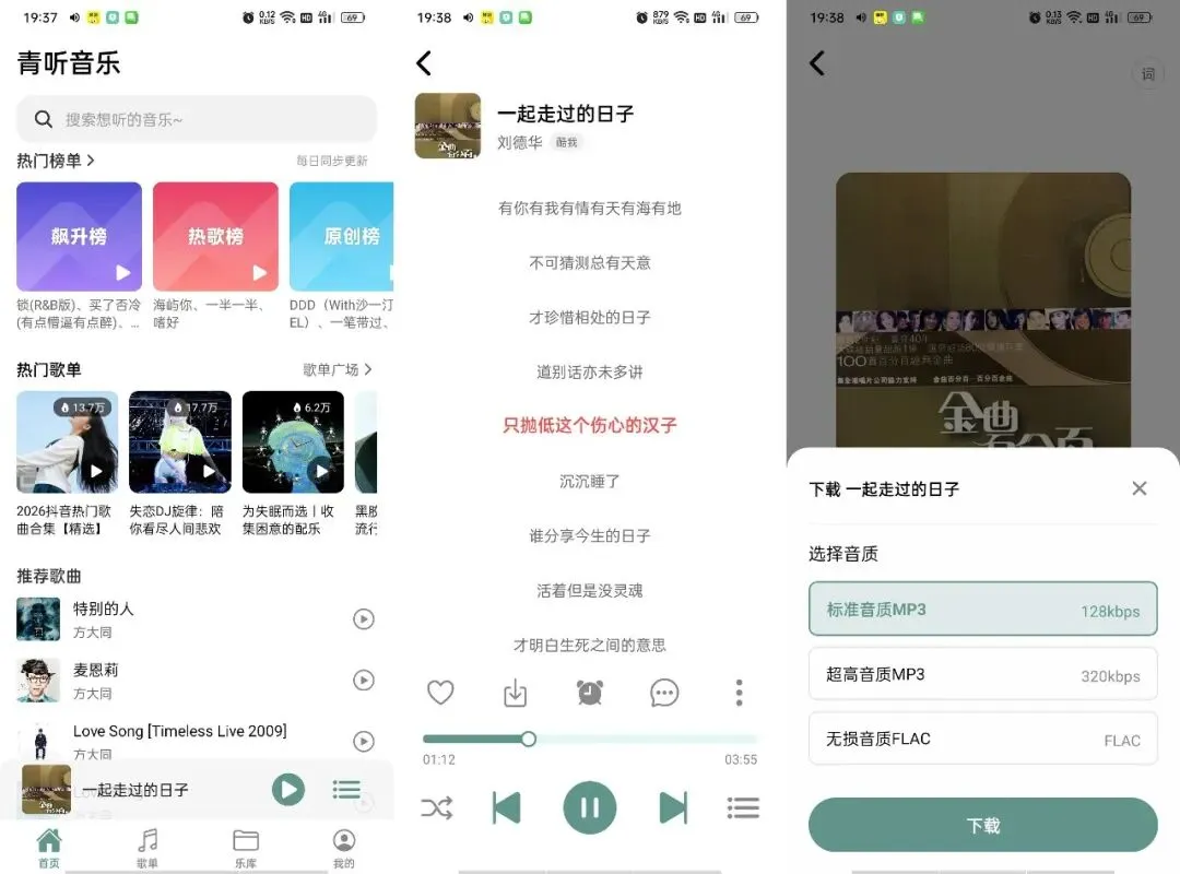 1. **青听音乐(需配合接口使用,可听可下有歌词)1.3.1**