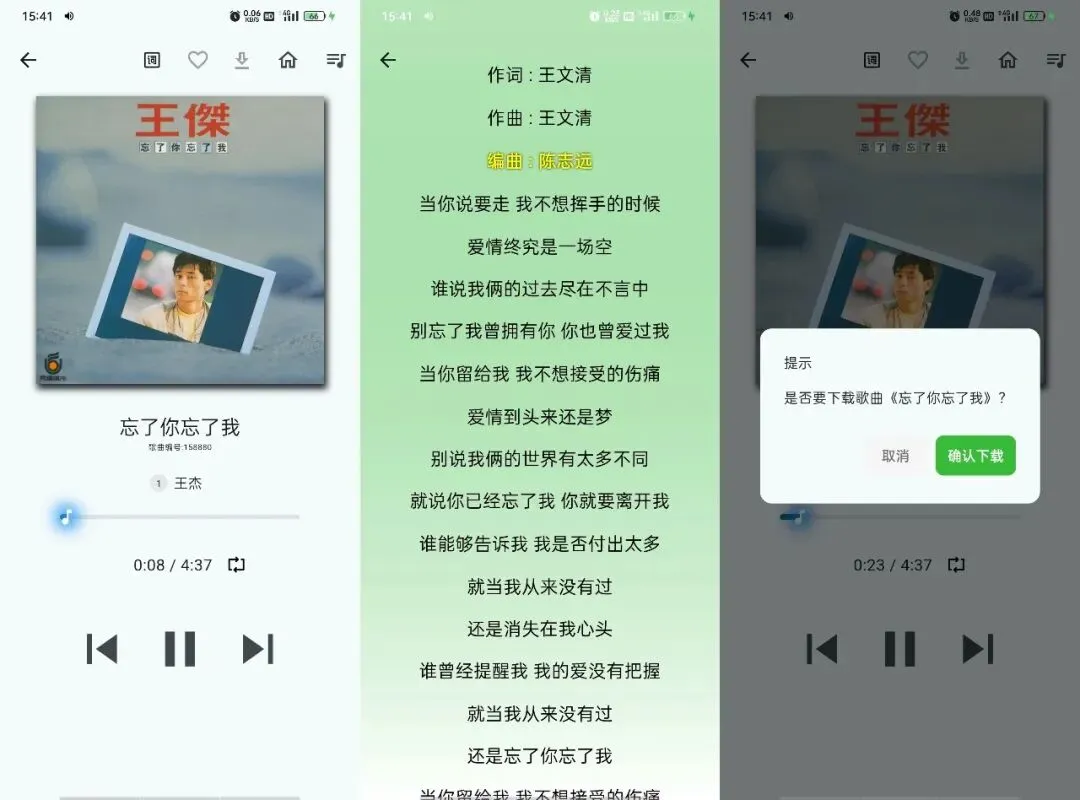 **简介:这款是轻量版,只有几百KB,估计是网页打包而成,但是界面和功能都是一流,怕占空间的选这款,开箱即用。 Music音乐是一款极致简约的音乐播放器。它可能仅专注于核心的播放功能,支持在线收听、歌曲下载和歌词显示,安装包体积非常小,适合追求纯粹听歌体验、不希望应用过于臃肿的用户。