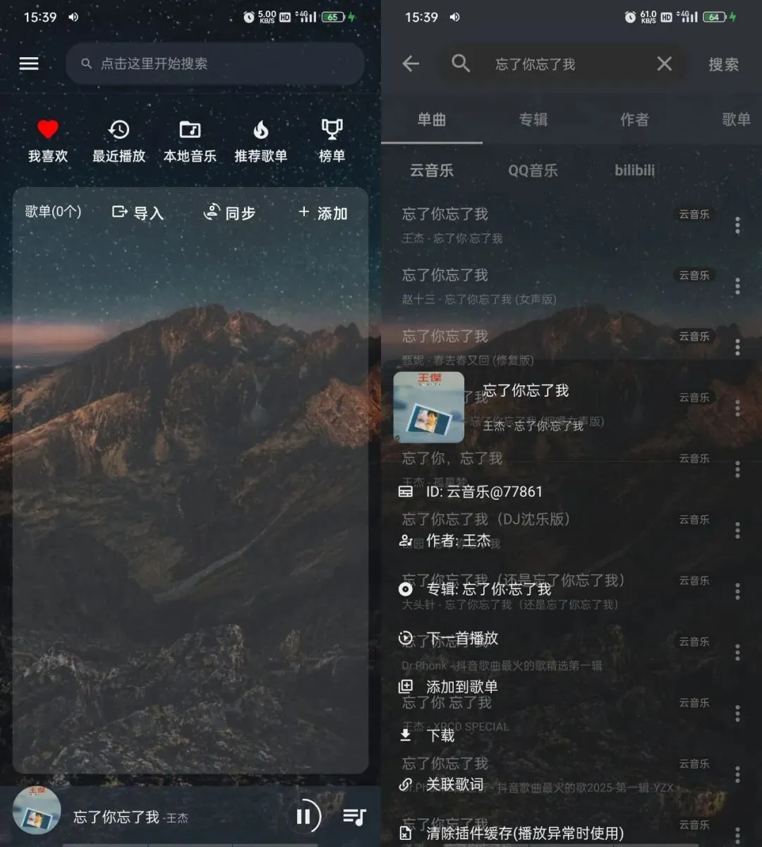 青听音乐是一款采用“播放器+接口”模式的音乐应用。其核心是一个播放器框架,功能完整性依赖于**外部的源接口**。通过配置接口,它可以实现音乐搜索、在线播放、下载和歌词显示。