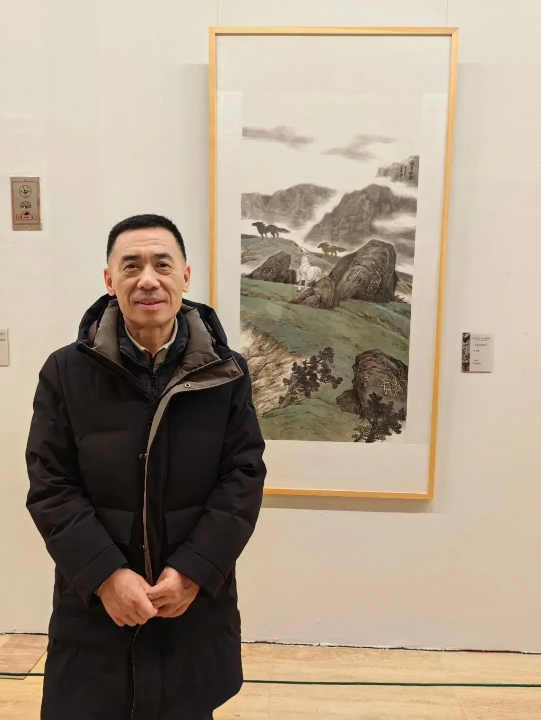 在意境营造上,他以“咫尺千里”的空间处理,将阴山的雄浑壮阔与岩画的浑然质朴相统一,让观者在尺幅之间窥见千年文脉的绵延。这种“摹古而不泥古”的创作路径,正是对传统中国画“继承与创新”的最佳诠释——既守住了传统艺术的文化根魂,又赋予其当代的审美表达与思想内涵。