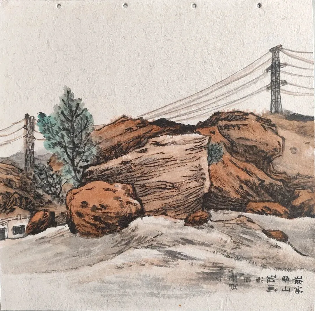 画面中,赭石色的岩石肌理苍劲古朴,线条似刀刻斧凿般力透纸背,层层晕染的山峦、流云形成虚实相生的视觉层次;骏马是组画作品的核心意象,老马沉稳伫立如磐石,似传统文脉的坚实后盾,小马昂首扬蹄若新生,恰是当代艺术与创作者的自我映照,祖孙马的亲昵互动,暗合着传统与现代的血脉相承,也藏着艺术家对“亲情互盼”的人文抒怀。