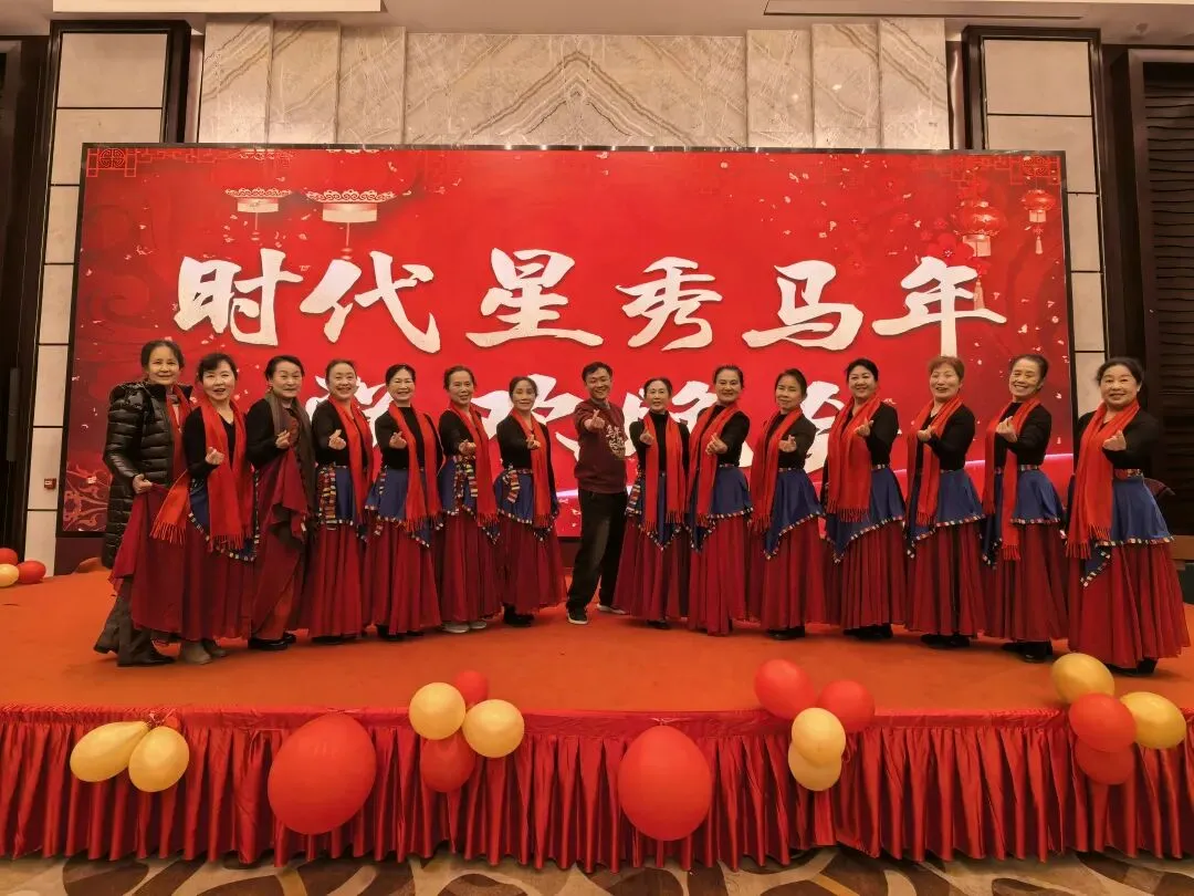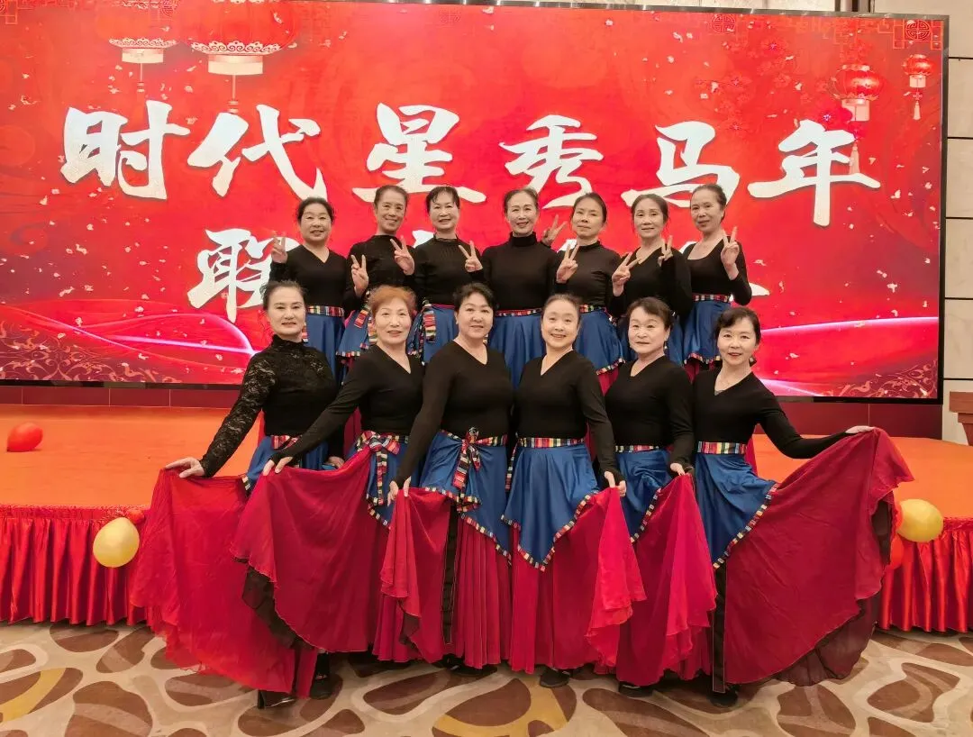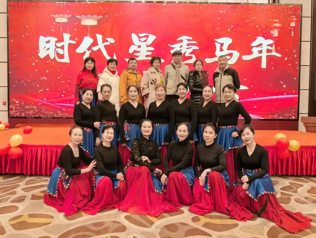 联欢会上,全体成员高唱“德江分会之歌”。由一组团、四组团、七组团的会员代表临时组合表演三句半“龙马精神迎新春”。最后全体成员兴致勃勃地跳起傣族“噶光舞”,为丙午马年祈福。