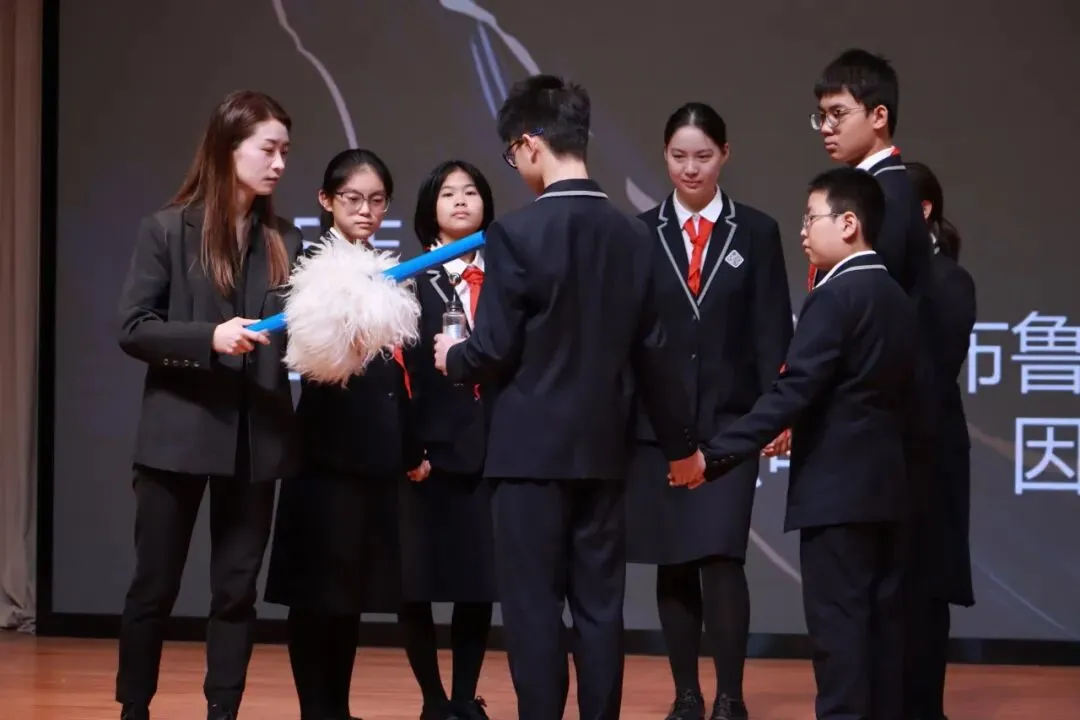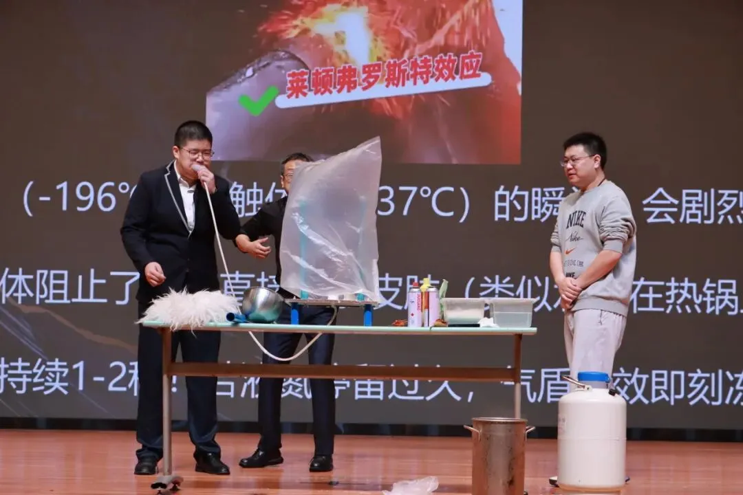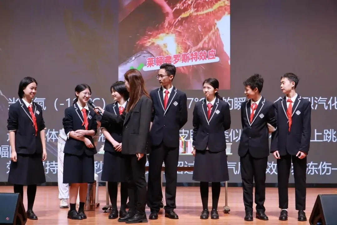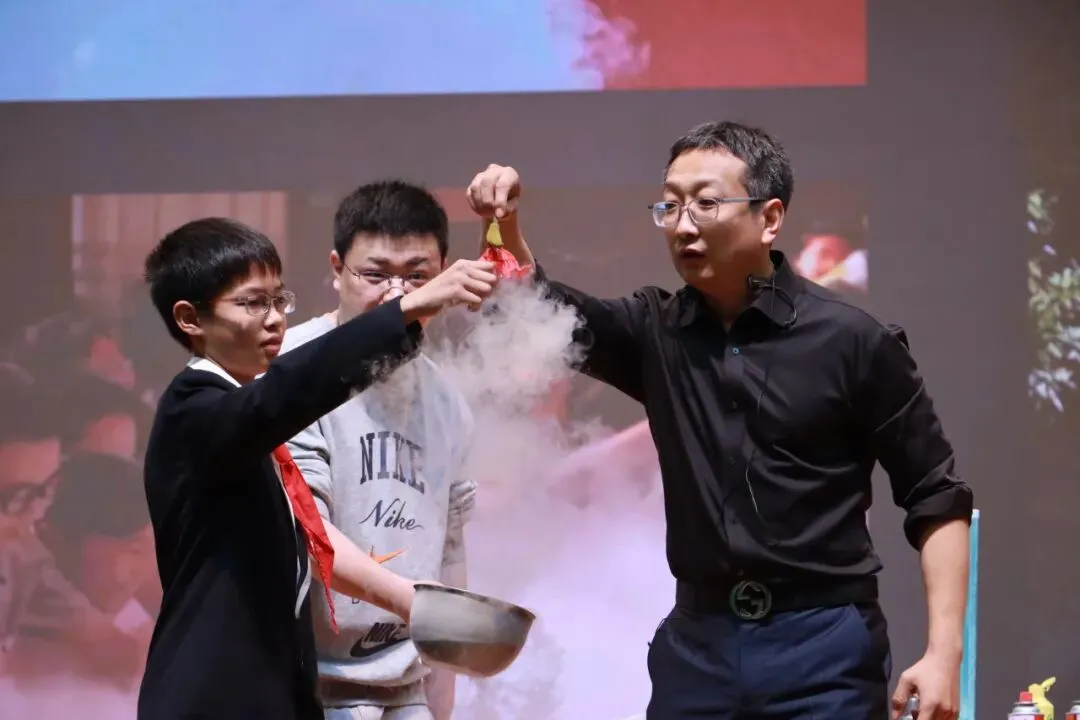 科普达人吴盟博士带来了一场趣味盎然的科学秀表演,奇妙的实验现象与沉浸式参与体验,让执信路校区初中的同学们在欢声笑语中探索科学奥秘,为逐梦之路注入好奇与求知的活力。