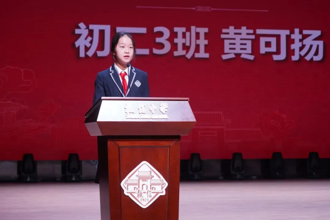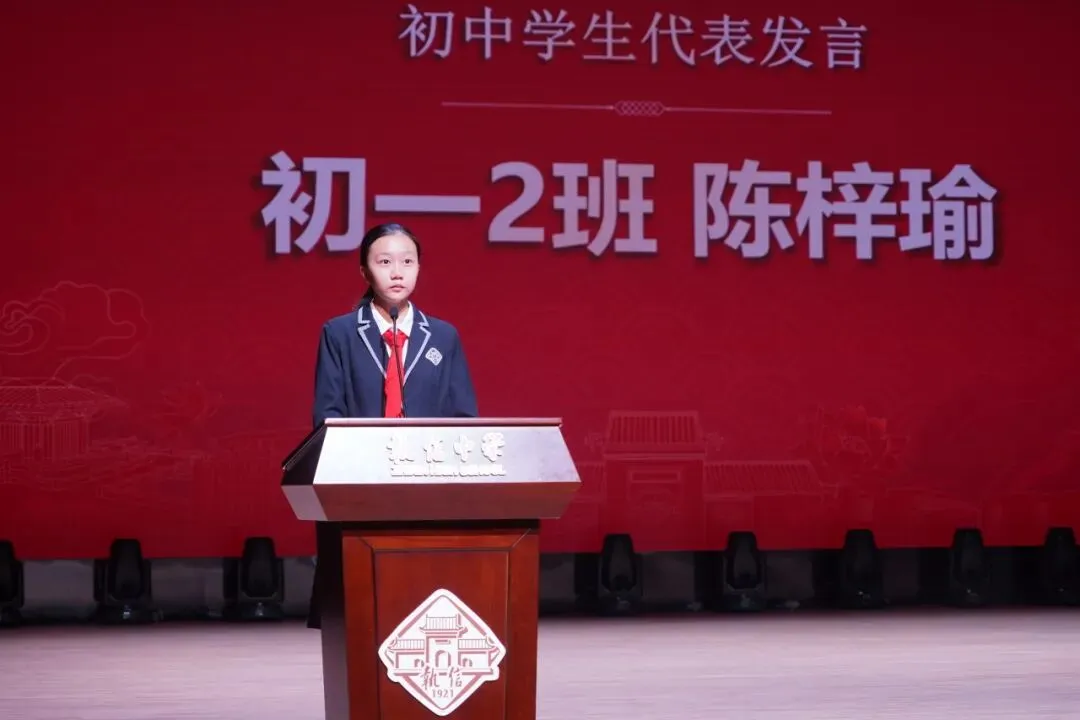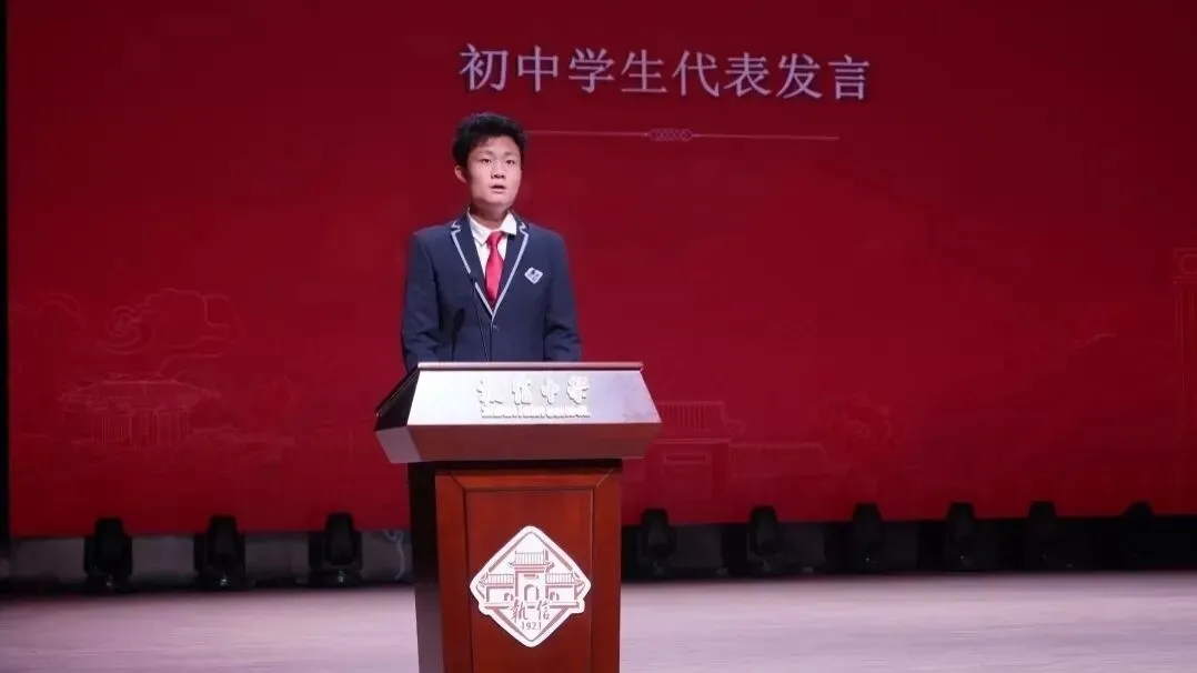 天河校区的三位初中学生代表依次登台,他们立足自身学习与成长经历,回顾一学期以来的收获与感悟,分享在学习方法、时间管理、竞赛备赛等方面的体会,也表达了对老师、同伴和学校的感谢之情。真挚朴实的话语,展现了执信学子积极向上的精神风貌与清晰笃定的成长目标。