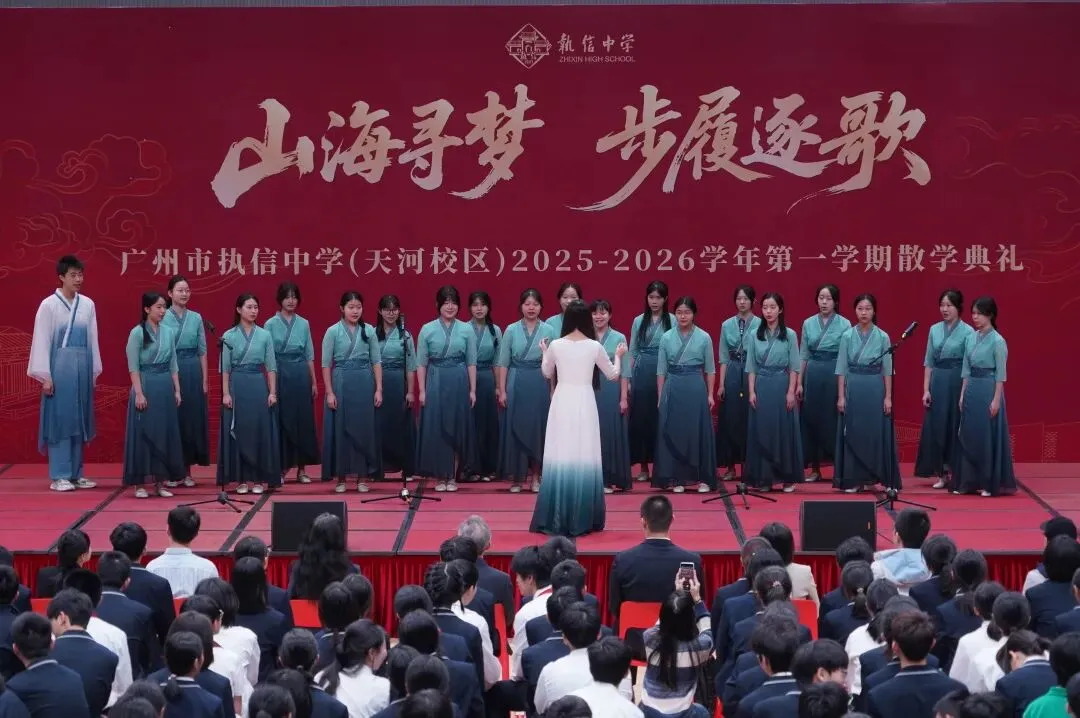 岁聿云暮,冬韵盈怀。2026年1月30日、2月6日,广州市执信中学举行2025-2026学年第一学期初中、高中散学典礼。全体师生齐聚一堂,以“山海寻梦,步履逐歌”为主题,回顾耕耘之路,共话成长收获,表彰优秀榜样,在庄重而热烈的氛围中,为本学期的逐梦之旅画上圆满句点。
