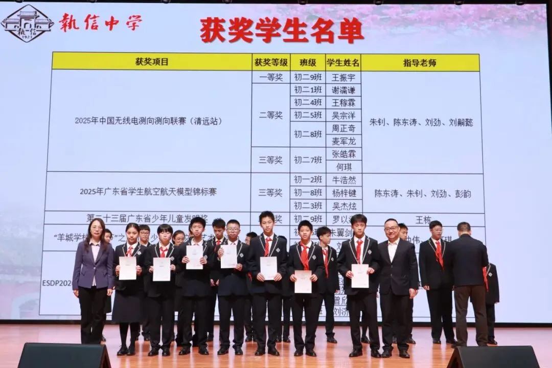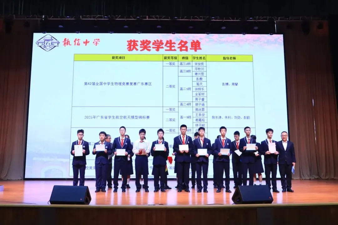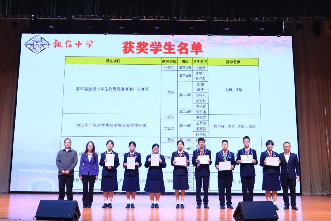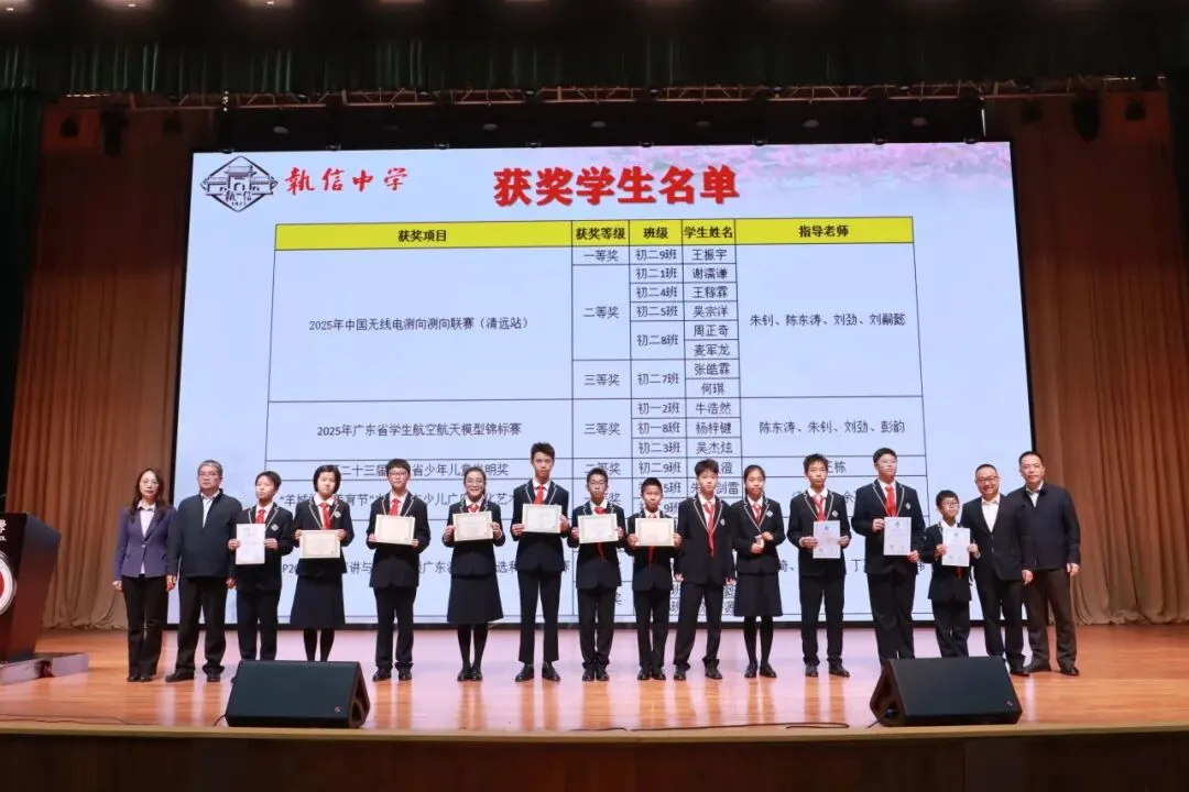 散学典礼的最后进行了隆重的颁奖仪式,初高中各年级在科技创新、体育艺术、特色活动中脱颖而出的同学,均在学校领导手中接过荣誉证书。这既是对他们过往努力的肯定,更是对全体同学 “以榜样为镜,向优秀看齐” 的殷切期许。