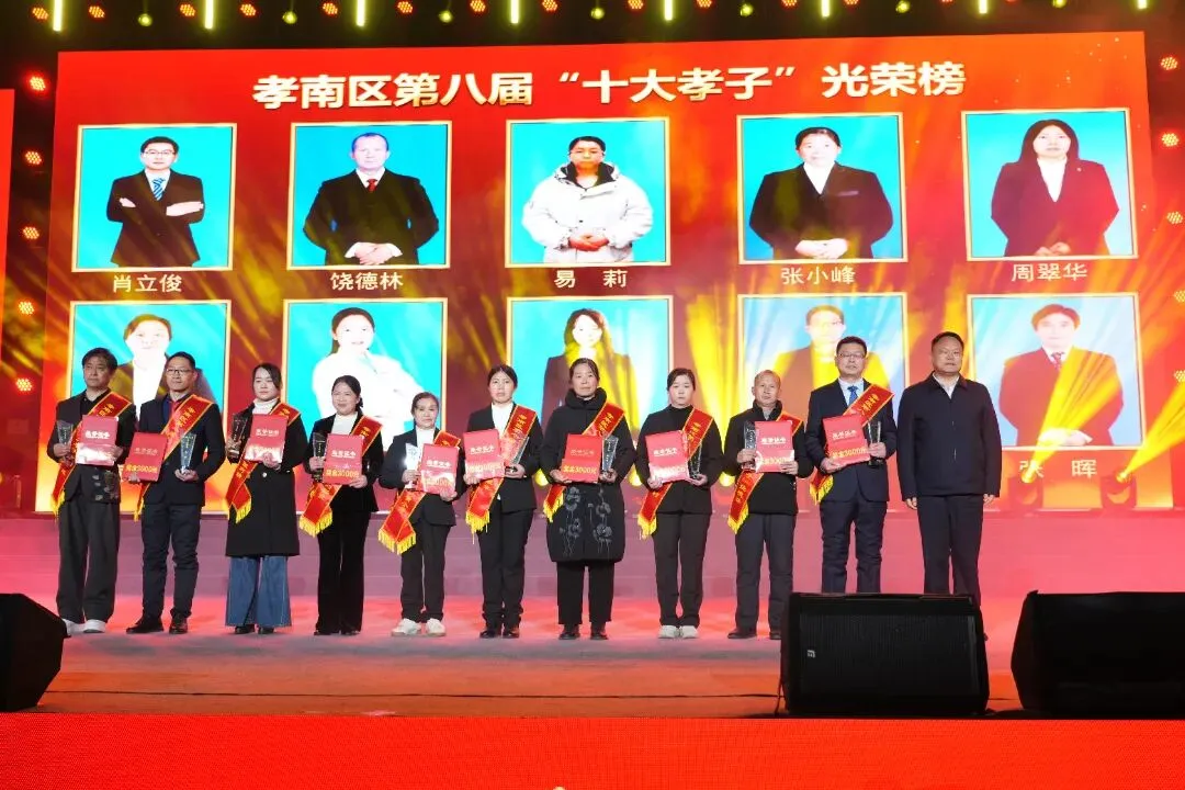 晚会现场隆重举行第八届“十大孝子”颁奖仪式,表彰孝老爱亲、崇德向善的先进典型,以榜样力量引领文明新风,让孝德文化在澴川大地代代相传、生生不息,擦亮孝南“孝文化”核心品牌,筑牢精神文明根基。