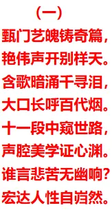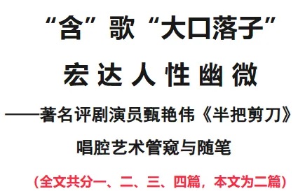 由上当见,甄艳伟的《半把剪刀》,是一部以“【含】歌【大口落子】(含着唱大口落子)”这一独特声腔美学写就的陈金娥灵魂史诗。她的演唱艺术证明:“含歌”是生存的铠甲,是痛苦的熔炉,是深情的秘语。“大口落子”是灵魂的号角,是爆发的火山,是审判的雷霆。而“含着唱大口落子”,则是将铠甲与号角、熔炉与火山、秘语与雷霆辩证统一的至高艺术。它要求演唱者在最激烈的爆发中保持最清醒的控制,在最深沉的内敛中蕴含最强大的能量。通过这一技术,甄艳伟不仅让我们听到了一个悲惨的故事,更让我们聆听到了一个被侮辱与被损害的灵魂,如何在无边的黑暗中,凭借母性的本能、坚韧的意志和朴素的正义感,完成对自身命运的悲壮主宰的全过程。她让陈金娥这个角色,超越了戏曲舞台,成为中国艺术长廊中一个以声音塑形、以苦难铸魂、以抗争获得永恒的经典女性形象。在那幽咽含歌与裂帛大口交织的声浪中,我们听见了历史深处无数沉默者的共鸣,也看见了人性在绝境中绽放的、不可摧毁的尊严之光。正是: