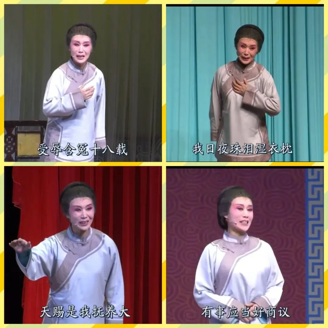 唱段9:“夫妻好比同根草,生死相依不离分。”“草”字轻吐,比喻贴切;“分”字下沉,强调一体。面对曹亚男的辱骂,演唱声线未抖,反而呈现出超然的平静与高度。体现“不会骗人”的坦荡,语气恳切、通透,如智者布道,完全超越了个人荣辱。“有事应当好商议,且不可骄气太逼人。”前句,“议”字平实,理性。后句,音量微提,尾音下沉,意味深长,既是劝诫,也似命运的谶语。甄艳伟展现了角色“精神上的居高临下”——她不与浅薄者争锋,其人格高度已自带光芒,其演唱“含着”历尽沧桑的通达与不容置疑的道德高度,展现了角色精神上的绝对优越。