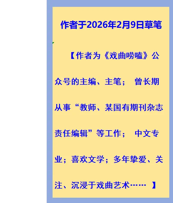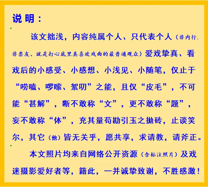声明:欢迎关注、转发本公众号的“原创”作品;凡是转载本公众号“原创”作品的,请按“公众号原创的转发规定”要求,在转发的标题下面标明原作者“XXX ”和“戏曲唠嗑”的公众号链接,谢谢合作!!!