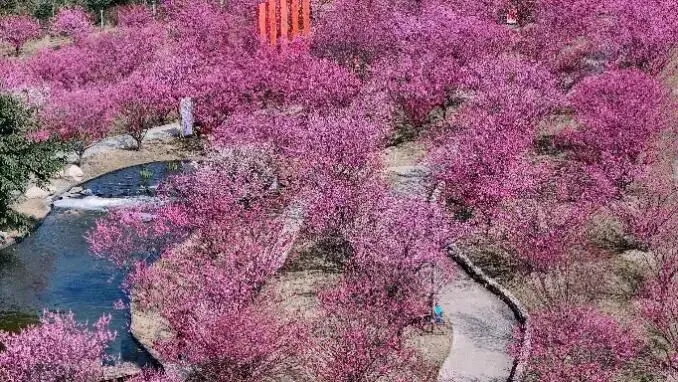2.田园景观:盘龙盛世、大千梅林、游龙飞天、情人梅、锦绣梅林、梅花岛、梅花坞、大观梅林、听梅阁等