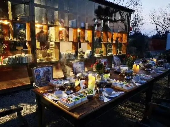 4.乡村美食:自助烤肉/自助汤锅、火锅、特色小吃/抄手、面条、围炉煮茶、下午茶、咖啡饮品等多样性的产品,可接待团队、生日宴、散客等餐饮服务。现磨咖啡、围炉煮茶、自助烤肉、蔬食汤锅、羊肉汤锅、甜品简餐套饭。