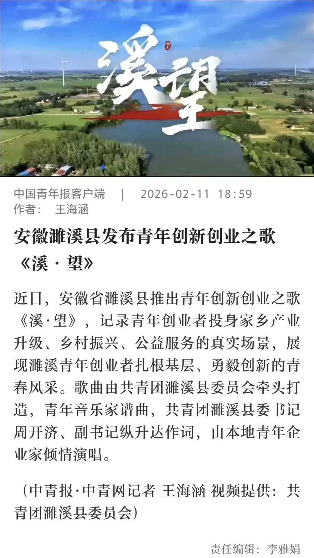 这一做法不仅收获了全县青年的一致好评,更是获得了权威媒体的关注——2月11日,歌曲荣登《中国青年报》客户端!