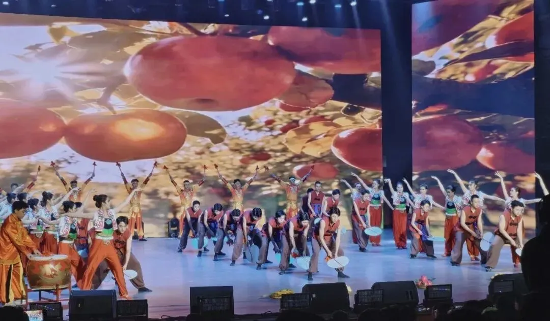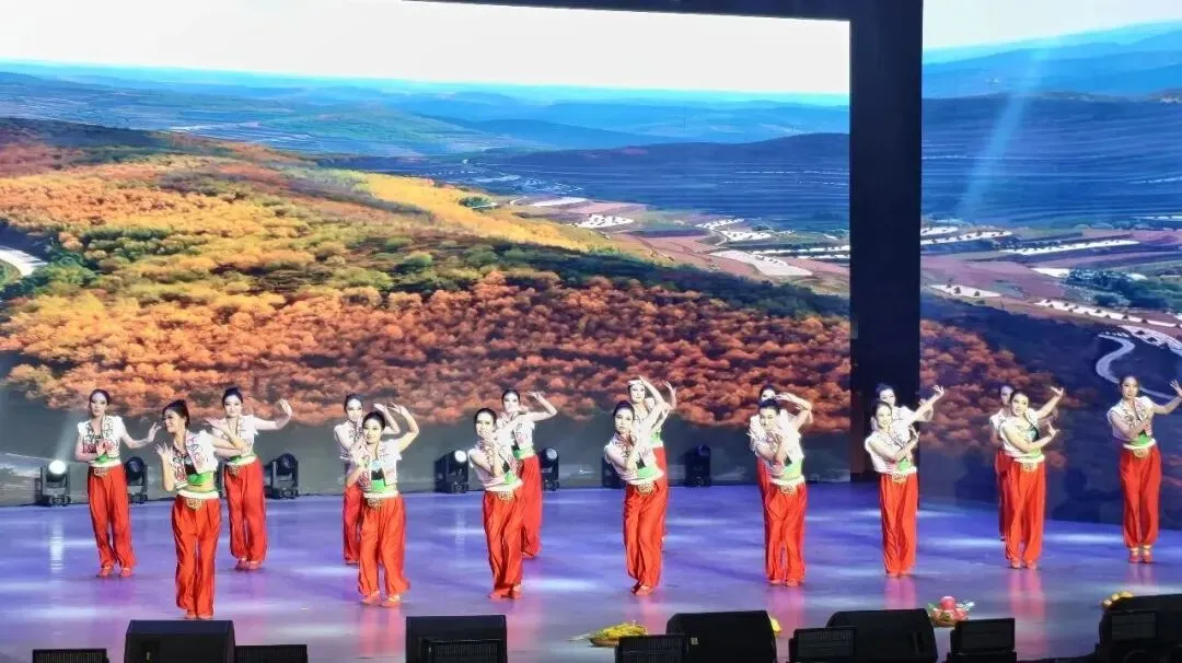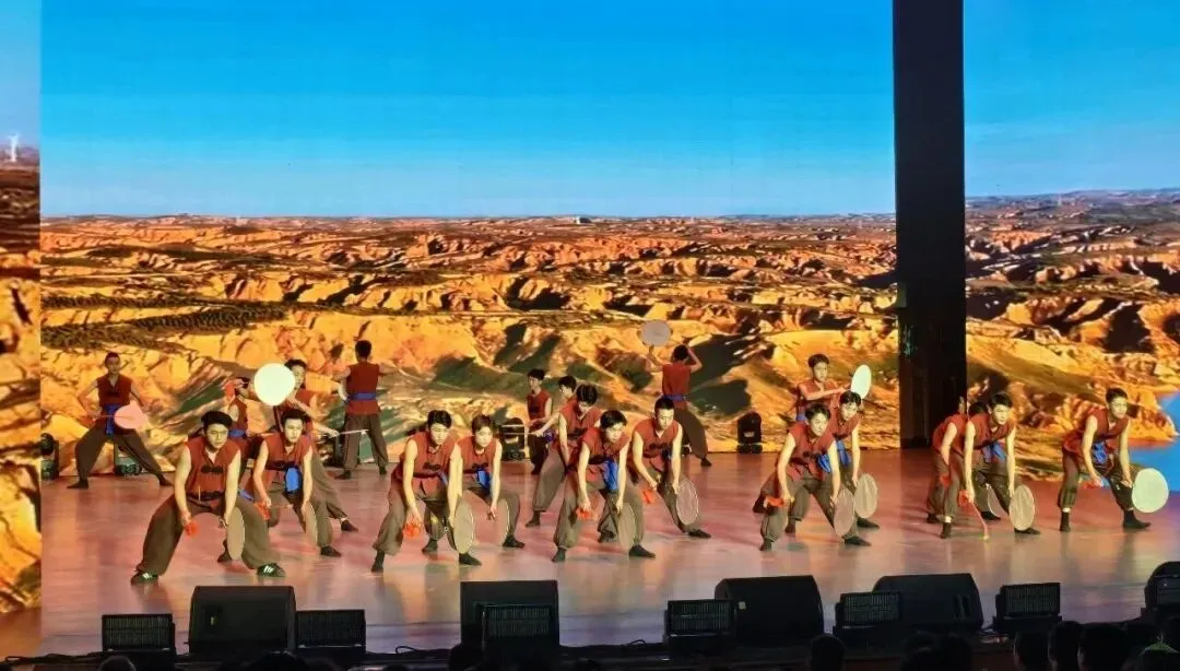 舞蹈《庆丰年》融入传统韵律与现代旋律,既保留了非遗文化的原汁原味,又贴合当代观众的审美需求,让古老的民俗气息更易被年轻人感知,将民间艺人执鼓祈愿的古老仪式,通过当代舞蹈语汇重新演绎。舞台上,文萃中学的舞者们身着特色服饰,手持羊皮单面扇鼓腾跃翻飞,以充满力量的旋转与击打,还原了劳动人民庆祝丰收的炽烈场景,每一个舞步都饱含对土地的感恩、对自然的崇敬,每一段旋律都传递着丰收的喜悦与对来年的期盼。让现场观众沉浸式感受静宁非遗的独特魅力,掌声与喝彩声此起彼伏。