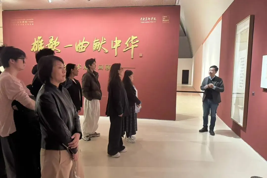 10 月 24 日,中央戏剧学院表演系党总支书记贾姗姗带领师生一行,走进中央美术学院美术馆。美术馆党支部书记韩文超热情接待,策展执行李垚辰以艺术与时代的共生为脉络,为大家细致讲解每一件展品背后的故事;设计总监纪玉洁则从展览空间设计的角度,分享了如何通过视觉语言还原许幸之的艺术脉络。