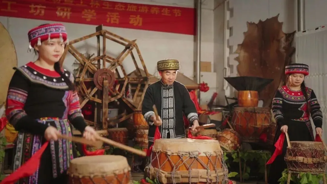 卢成是自治区级非遗“瑶族山歌”的代表性传承人。在他的熏陶下,两个女儿从小耳濡目染,大女儿如今已是上林县瑶族鼓乐非遗传承人。