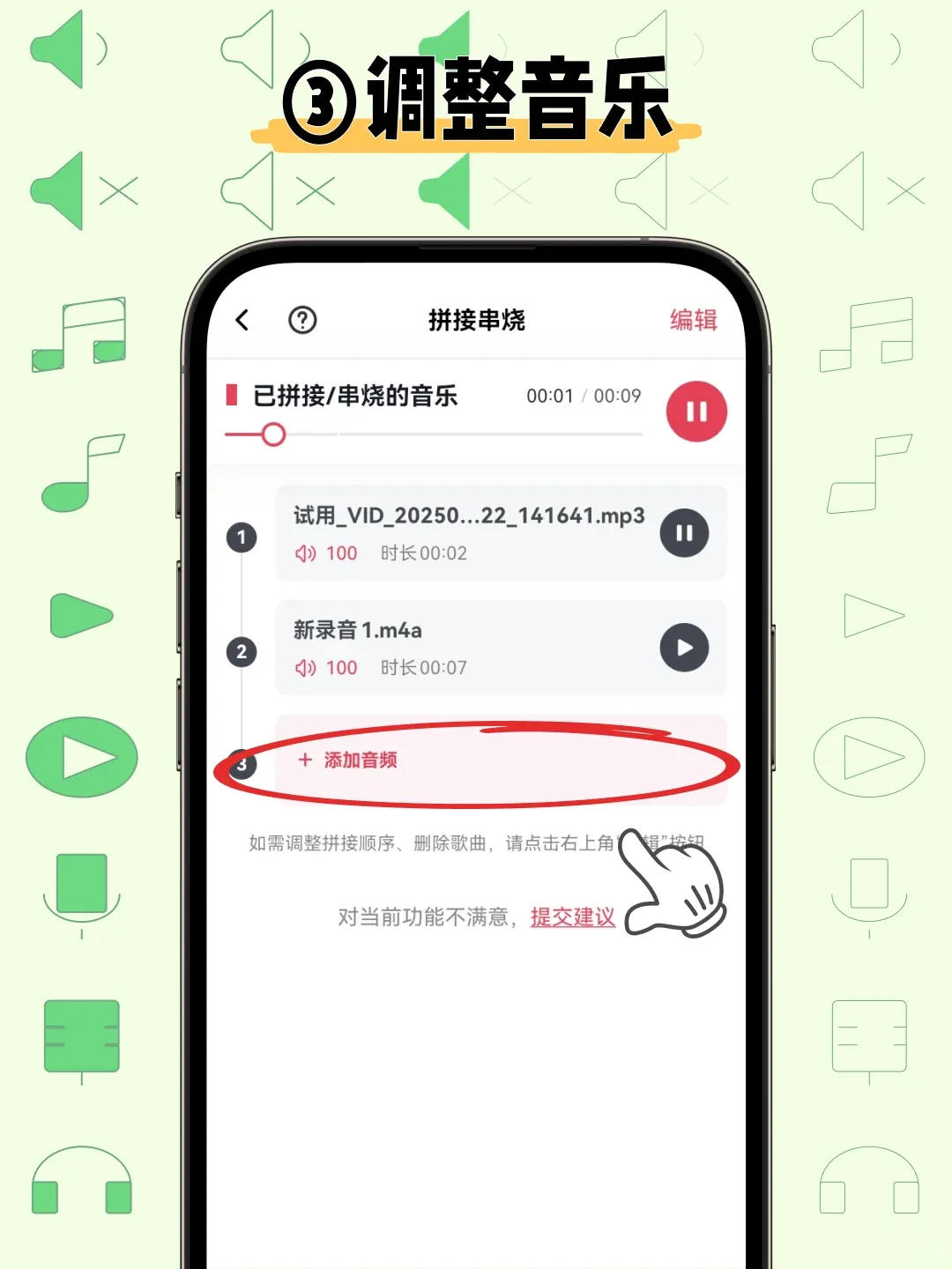 1. 拼接串烧多首歌曲,把喜欢的流行歌、老歌串起来,做成专有音乐串烧 ,平时听歌不用反复翻歌;