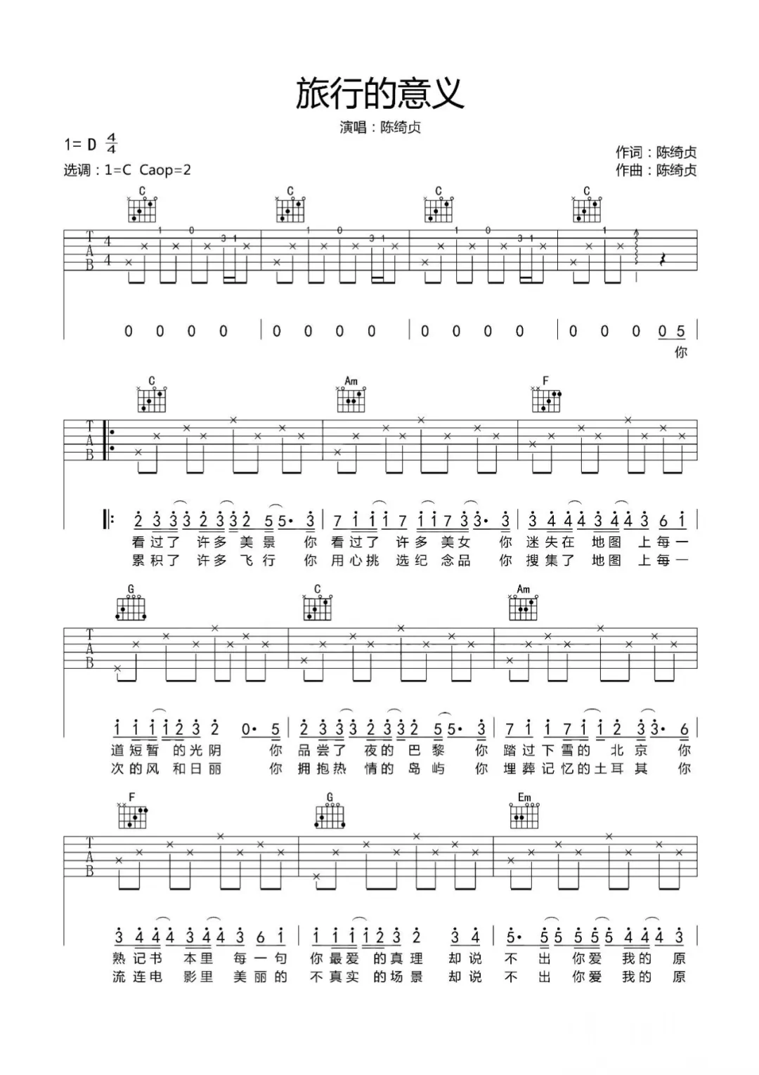 陈绮贞的《旅行的意义》以其清新的曲风和深邃的歌词,深受年轻人喜爱。这首歌的吉他伴奏部分简单而富有情感,适合初学者在掌握基本弹奏技巧后进行尝试。通过弹奏这首歌,你可以感受到吉他音乐与歌词之间的完美融合,进一步提升自己的音乐感知能力。