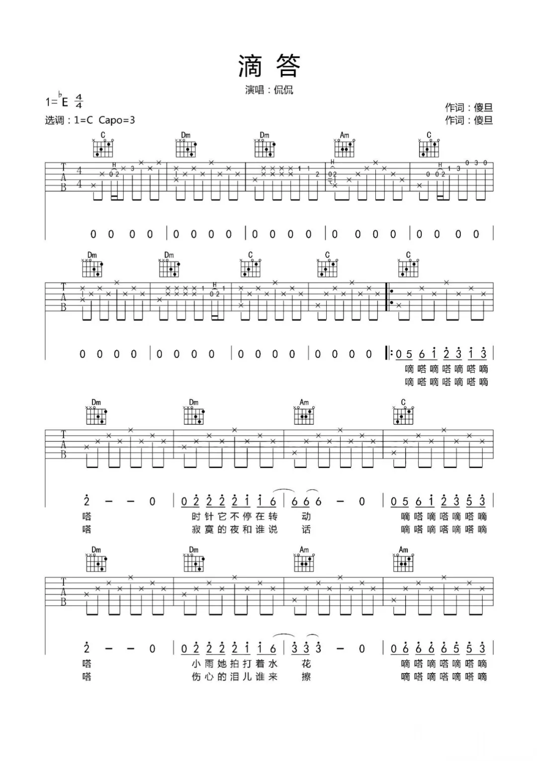 《滴答》以其轻快的节奏和易于记忆的旋律,成为了吉他初学者们的挚爱。这首歌的和弦转换简单,适合初学者在练习过程中逐渐熟悉吉他指板的布局。同时,通过弹唱这首歌,你还可以锻炼自己的节奏感和音准感,为日后学习更复杂的歌曲打下基础。