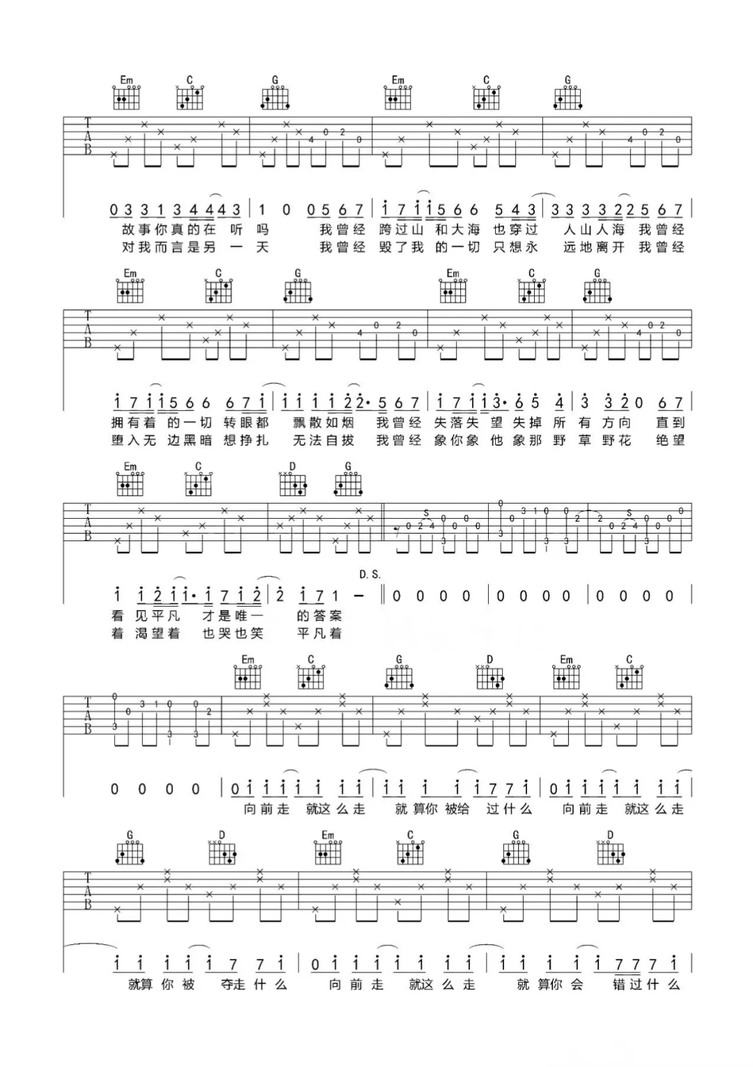 朴树的《平凡之路》以其深沉的歌词和激昂的旋律,成为了许多人追求梦想时的励志歌曲。虽然这首歌的吉他伴奏部分稍显复杂,但初学者可以通过分段练习的方式逐渐掌握。在练习过程中,你可以感受到吉他音乐的力量和魅力,同时也能在歌曲中找到共鸣和动力。