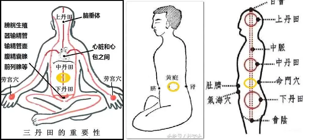 此时天龙地虎汞铅相交,黄婆为媒,阳水阴火交媾,入住黄庭——黄庭之地为脾土所在。男子能量中枢在下丹田,即储精囊里;女人的能量中枢在胸腺里。当电池做好了后,就要把炼制好的金丹蓄养挪移到黄庭处,即太阳轮所在。