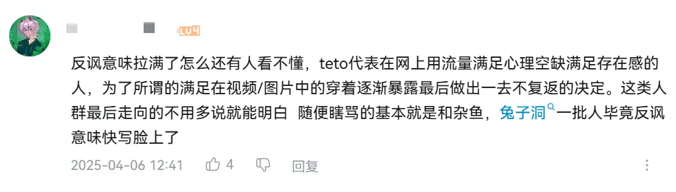 不过从他的X创作和最近那首《哦吼爱》来看,《升天感》的“讽刺”,只不过是想要赚取流量和擦表的挡箭牌罢了。而《哦吼爱》这首歌,再拿“讽刺”做挡箭牌就没有用了,或者说,《哦吼爱》这首歌压根演都不演了,仿佛作者在说:我就是来搞儿童色情蹭流量的呀~