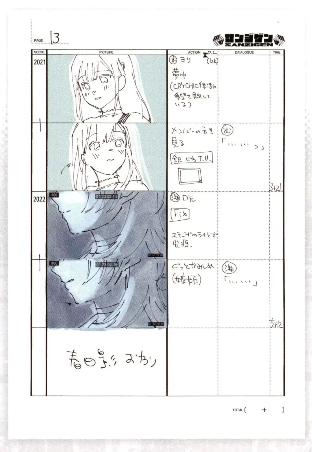 立希は涙ながらに「もう1曲いいですか!」と声を上げる。戸惑いながらも、その想いにメンバーは次々と応えてゆく。そして、はじまりのメロディを奏でるため、祥子は鍵盤に指を置く。「春日影」の演奏が、春の陽だまりのようなあたたかい日々、心を通わせたかけがえのない時間を呼び覚ます。バンド・CRYCHICは、彼女たちにとって特別で、何よりも大切な居場所だった。涙をこぼしながら、そのすべてを慈しむように、彼女たちは音を奏でた。この演奏を一生、大切に抱き続けるために。