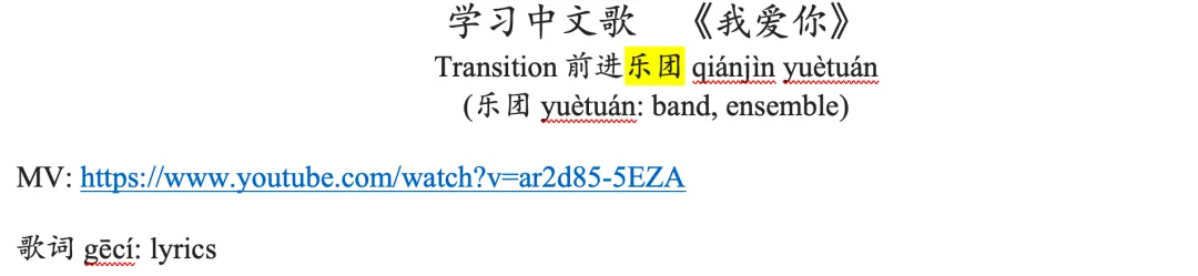 创作那首歌的前进乐团还有另外一首歌,也非常适合中文初级班或中级班的学生,歌名叫《我爱你》。情人节教这首歌,真是最合适不过了。