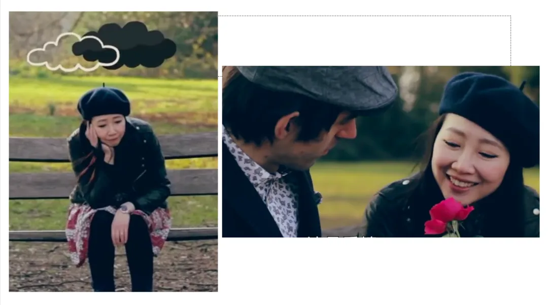在我们的中文项目中,学生除了上课时间外,每周也有30分钟跟学生小助教一对一见面练习口语的机会。所以这个复述任务可以在课上先进行一次预演,让全班看着PPT上的MV截图参加一人一句的“故事接龙”,然后课后再跟助教作一对一的复述练习和讨论。