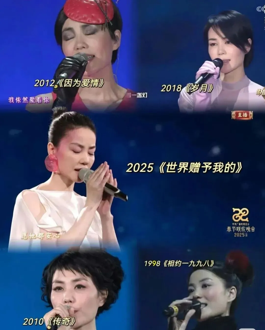 记者梳理发现,从1998年到2025年,王菲五次登上春晚,演唱的歌曲都是刻在时代里的经典,堪称春晚“爆款制造机”。