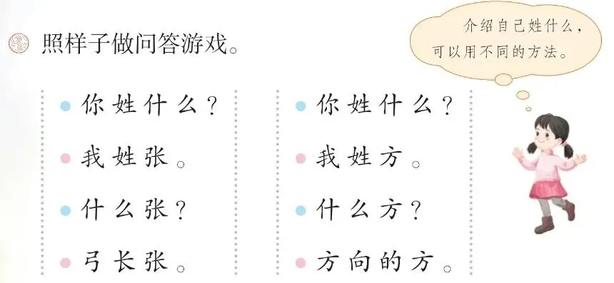 💡教师范读一二行,邀请班级李姓同学现场互动。识字小方法:(1)能拆就拆 (2)不能拆就组词