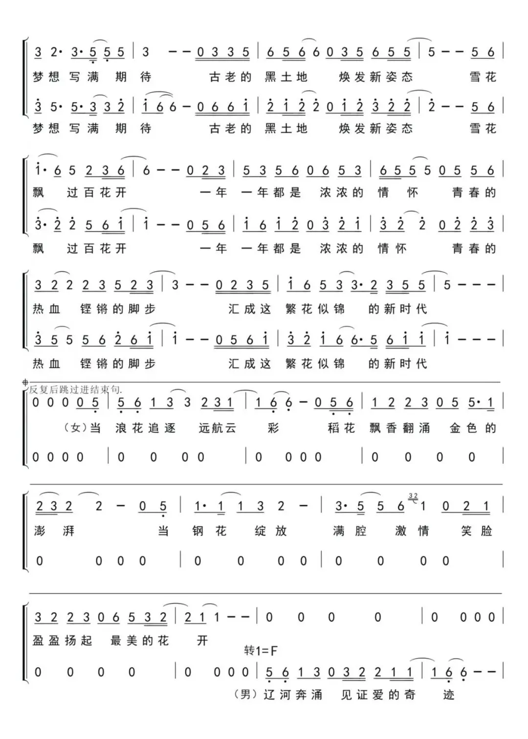 歌曲由我省著名词作家贾铮作词、音乐制作人孙旭升作曲,旋律优美流畅、朗朗上口。作品以冰雪皑皑到百花争艳为叙事脉络,将雪花、稻花、钢花与漫山遍野的鲜花次第铺展、交相辉映,既诗意描摹了我省白山黑水的四季流转之美,又生动写照了这片黑土地上的奋斗激情与幸福生活,充分展现出新时代辽宁生机勃发、繁花似锦的蓬勃气象。