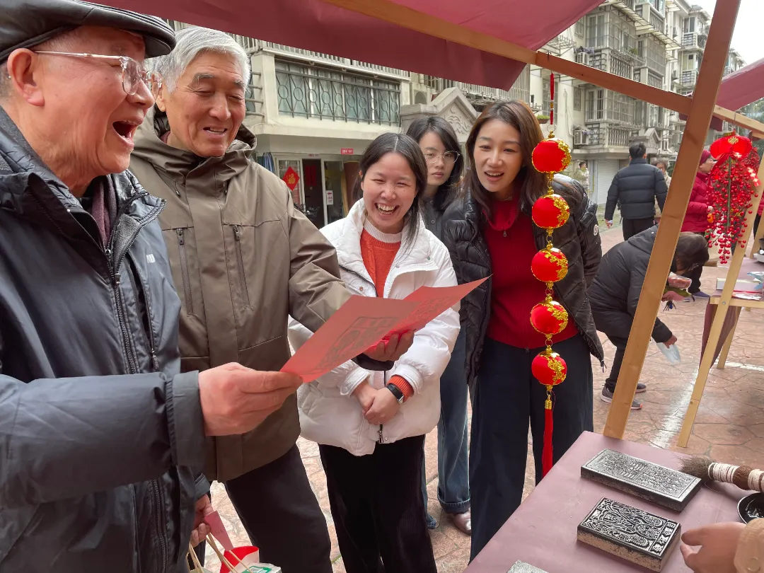 活动现场,邻里食堂的年味点心热气腾腾,书法爱好者挥毫泼墨送“福”字,非遗体验区年画拓印等互动项目精彩纷呈。老同志们与邻里居民在浓厚的新春氛围中话家常、品民俗、享团圆,邻里情谊在欢声笑语中悄然升温。
