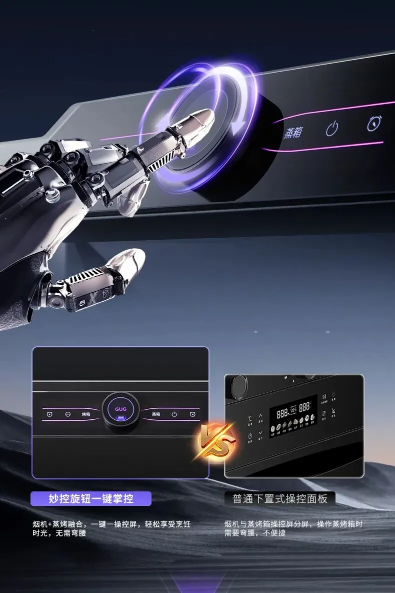 佳歌A5SZK蒸烤一体集成灶,妙控旋钮集成全功能,一旋一按即可调控蒸制、火力与烟机,极简操作解放双手,轻松备菜炸春卷、包饺子,尽享春节惬意。