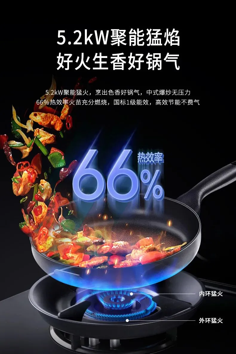 佳歌A5SZK蒸烤一体集成灶,5.2kW 聚能猛火双火包裹锅底,均匀受热锁牢食材本味;66% 高热效率省气省心,灶上焖鱼、灶旁煨汤,满室飘着浓郁年味。