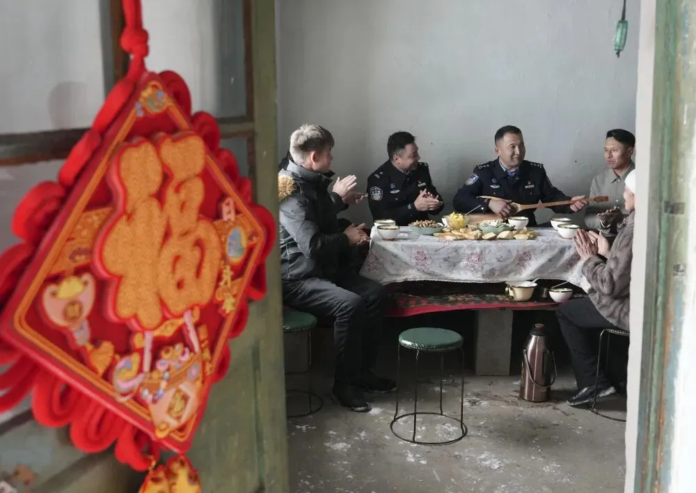 新华社客户端乌鲁木齐2月12日电(王菲 叶尔江·木哈买提)2月12日,新疆阿勒泰边境管理支队库尔木图边境派出所民警深入牧区开展走访,与牧民群众弹唱联欢,在欢声笑语中宣传边境管理政策与法治知识,共同迎接春节的到来。