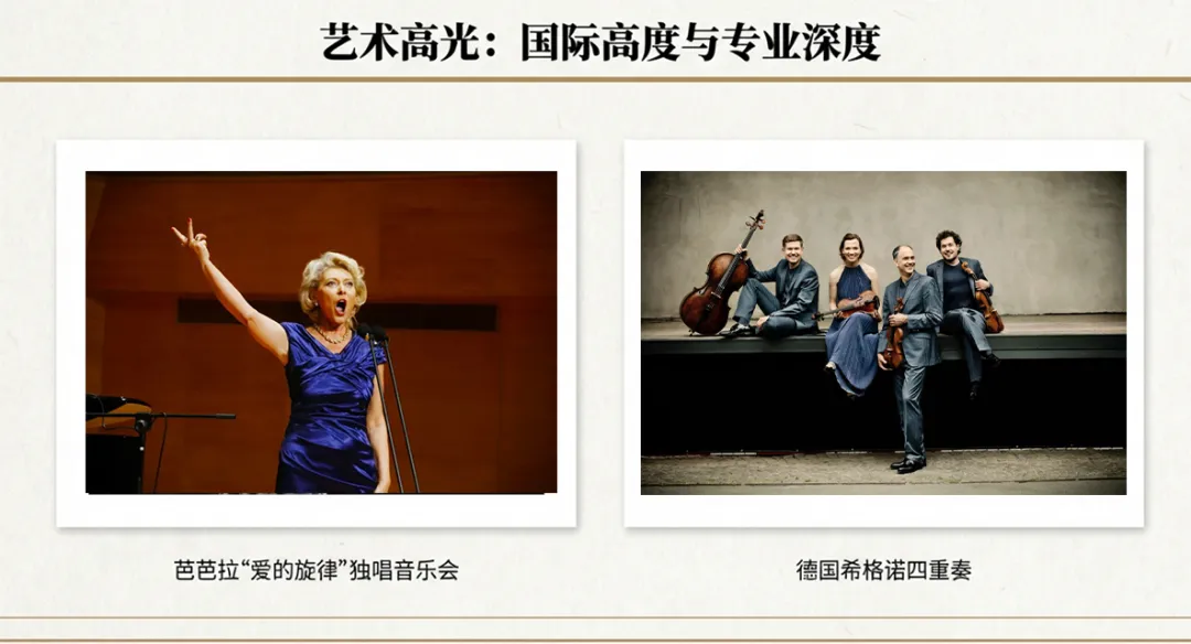 2025年,世界著名女中音歌唱家芭芭拉“爱的旋律”独唱音乐会余音绕梁; 德国希格诺四重奏带来的欧陆之风,让沈城乐迷沉醉;