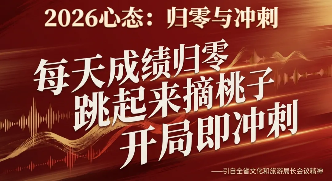 2026年1月,全省文化和旅游局长会议绘就了崭新蓝图。“每天成绩归零”的心态,“跳起来摘桃子”的干劲,“开局即冲刺”的姿态——这些不仅是工作要求,更是我们艺术工作者的精神写照。