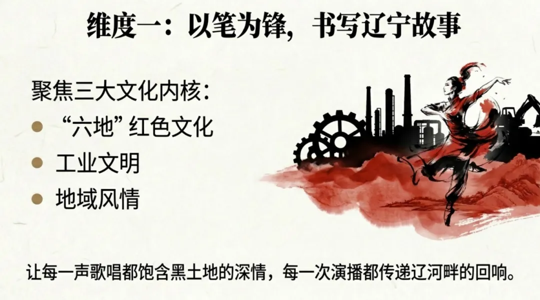 谱写辽宁的春天故事。聚焦“六地”红色文化、工业文明、地域风情,让每一声歌唱都饱含黑土地的深情,每一次演播都传递辽河畔的回响。