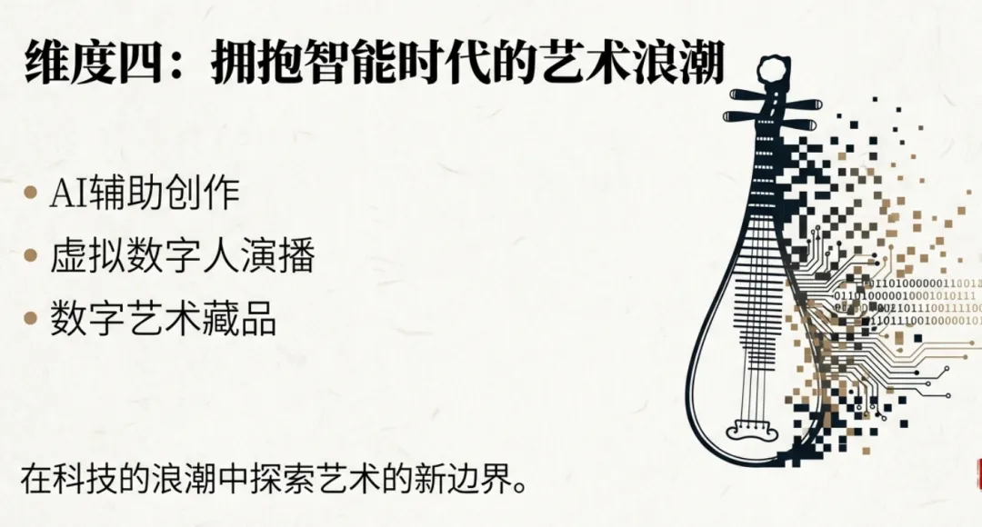 拥抱智能时代的艺术浪潮。人工智能与艺术创作的融合已拉开序幕,虚拟数字人演播、AI辅助创作、数字艺术藏品……我们将在科技的浪潮中探索艺术的新边界。