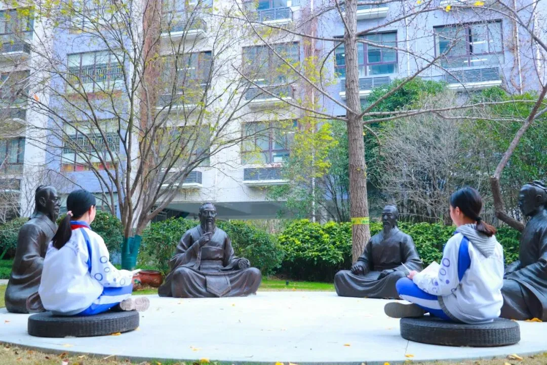 11月24日,校园雕塑周恩来、孔子、牛顿、爱因斯坦、梁启超先贤雕塑静立校园,以风骨传精神,以无声润童心,践行环境育人理念。