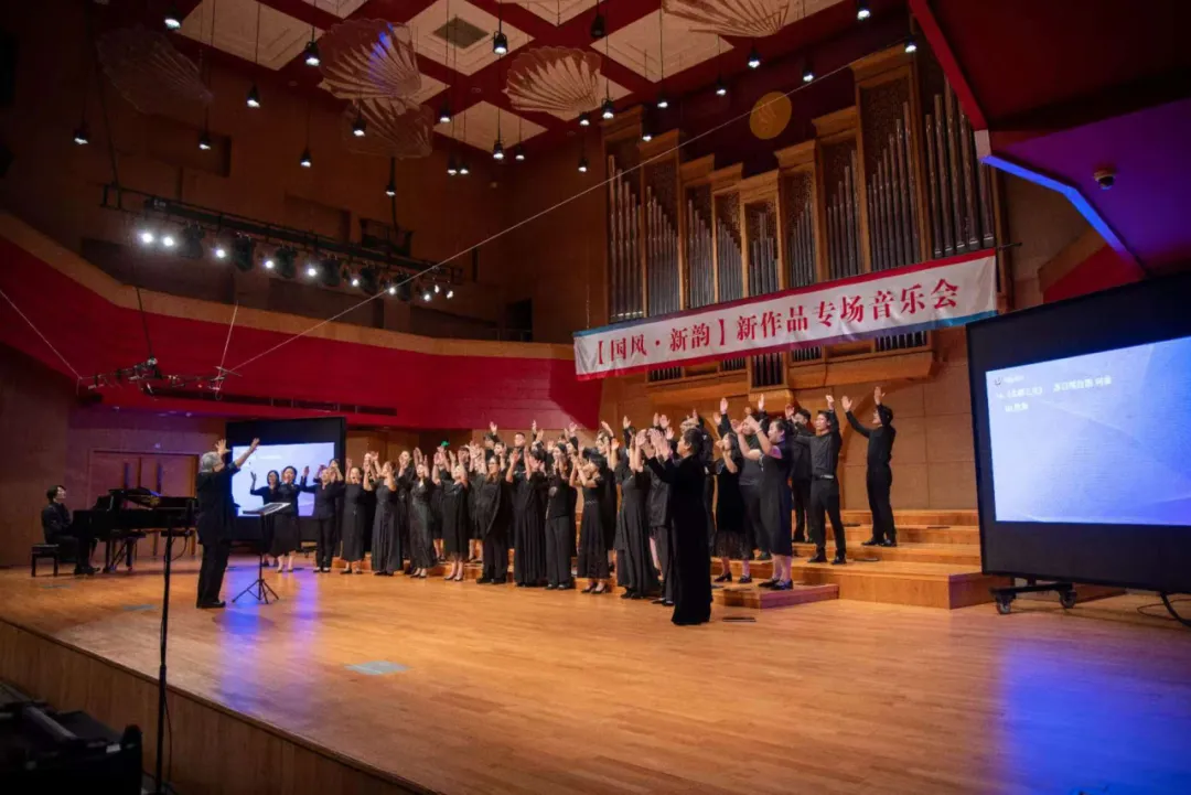 7月16日晚,吴灵芬老师带领Harmonia于北京金帆音乐厅献上“国风·新韵”新作品专场音乐会的下半场,表演了“国风”部分,演唱了由作曲家潘行紫旻、吴明昊、陈永华、黄硕、周阳、苏日嘎拉图的六部以国风为主题的中国新作品。值得一提的是首演了由该团团员——中国音乐学院作曲系硕士毕业生苏日嘎拉图创作的《北疆之光》合唱套曲。作品融合内蒙古辽阔大地自西向东的自然景观(大漠、草原、森林),以及多样的民族特色艺术形式(呼麦、马头琴、长调、科尔沁说书调),展现了跨越古今的情感、涌动的生命力及自然元素的和谐之美,共分为《大漠》《远调》《牧舞》《疆林》四幅生动的“画卷”。其中的《牧舞》乐章以其舞蹈化的节奏律动与丰富的声部对位关系,展现了蒙古马奔腾的雄姿,深受观众的喜爱。