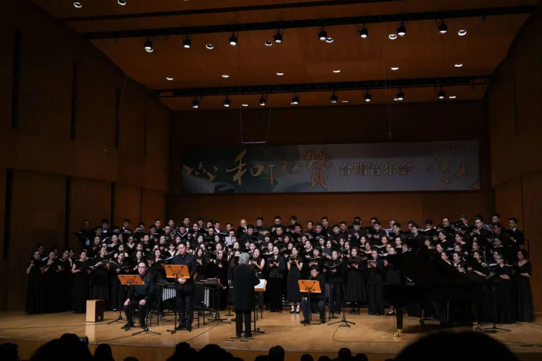 12月26日,Harmonia在国图音乐厅与青年合唱联盟的数个合唱团一同参演“和平礼赞”合唱音乐会。上半场的最后一首作品来自中国著名作曲家金湘老师《金陵祭》的选段——《涅槃》。在十多年前的一场演出中,和谐之声合唱团的团员们在表演时皆被音乐打动而流下热泪,这次复演同样完美呈现了这部作品。
